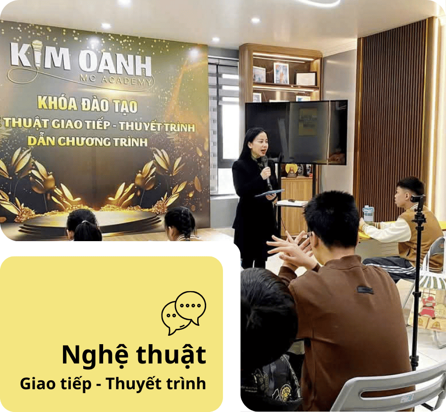 Tại Kim Oanh Academy, chúng tôi không chỉ đào tạo kỹ năng mà còn giúp học viên tự tin làm chủ sân khấu, giao tiếp chuyên nghiệp và truyền tải thông điệp một cách thuyết phục.